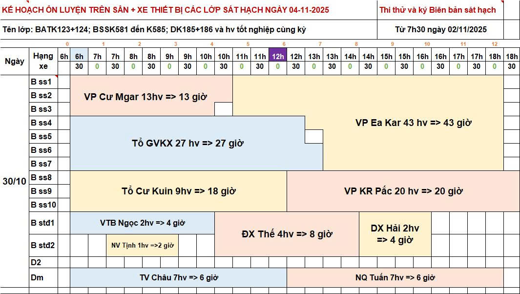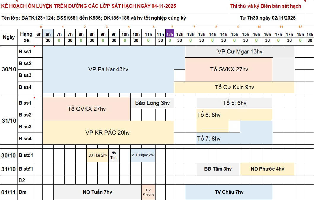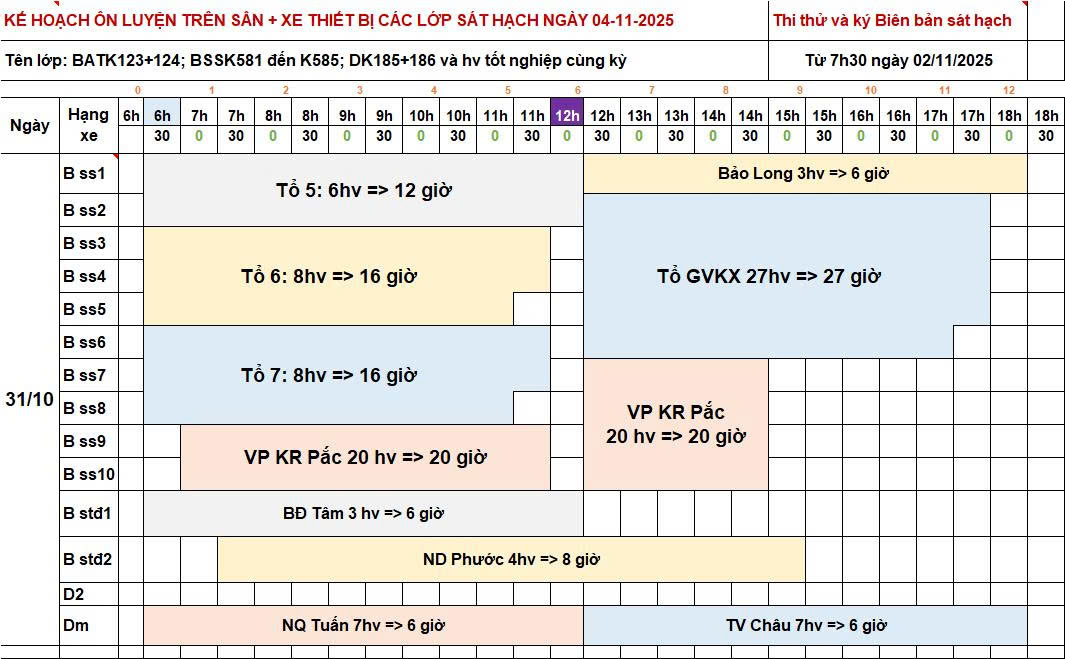 Lịch ôn luyện trong sân sát hạch (Kì SH ngày 04/11/2025)
