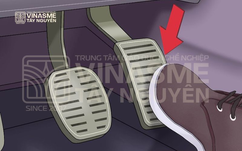Bước 1: Xe đang đứng yên, bạn hãy giữ chặt chân thắng và bắt đầu nhả từ từ chân côn.