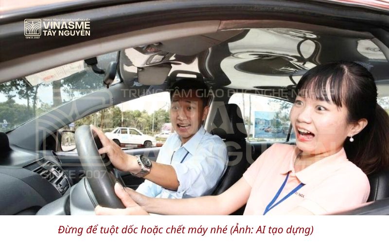 Thiếu tự tin: Khi xe bắt đầu rung mạnh, tiếng máy trầm xuống, thay vì nhận ra đó là dấu hiệu xe sắp bò lên, nhiều học viên lại lo xe sắp chết máy. Vừa nhả phanh đã hoảng, đạp thắng lại hoặc nhả côn sai thời điểm khiến xe trôi lùi hoặc chết máy.